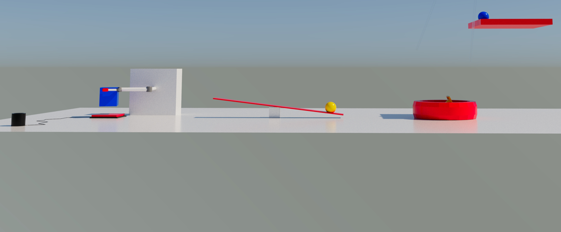 3D artists designed and created a whimsical Rube Goldberg machine that used five distinct